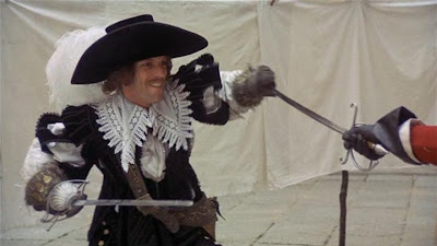 Each swordfight has a unique twist to keep them fresh, without being unbelievable. For example, set in a royal laundry, amongst a firework display, a convent, or even on ice, fight arranger William Hobbs choreographs it all impressively. He later worked on Ridley Scott's The Duellists, Flash Gordon, John Boorman's Excalibur and Terry Gilliam's Brazil among many others. He appears in the film and, like all the main cast, does his own swordfighting. He's best known to horror fans for the climactic duel in Captain Kronos - Vampire Hunter. Christopher Lee and Oliver Reed had previously crossed swords in Hammer Films' pirate and civil war swashbucklers. Good practice, but that didn't protect them both from suffering injuries, Reed even impaling his wrist on a blade.