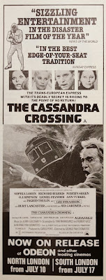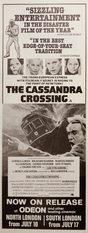 I include this shot from The Cassandra Crossing for fans of Living Dead at the Manchester Morgue - it's the star Ray Lovelock without that beard! He plays the guitar-playing boyfriend of Ann Turkel. A dangerous role, as Turkel was married to the star Richard Harris! More about The Cassandra Crossing here...
