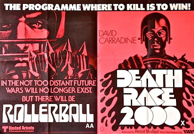 The delay in releasing Rollerball meant that Roger Corman's similarly-themed Death Race 2000 rolls up only a few weeks later. It was compared to Rollerball in the British press and favourably-reviewed as being better satirically. A great script and funnier than it looks, though director Paul Bartel was unaware that the second-unit was sent out to beef up the blood and gore as well. The censor didn't fall for the jokes though, and cut the kills for cinemas, despite the 'X' certificate.