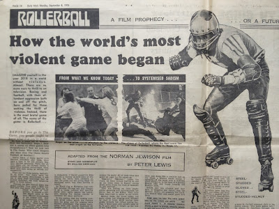 After a year of coverage in the movie magazines, Rollerball finally gets released in the UK, certificate 'AA' (no-one under 14 admitted).